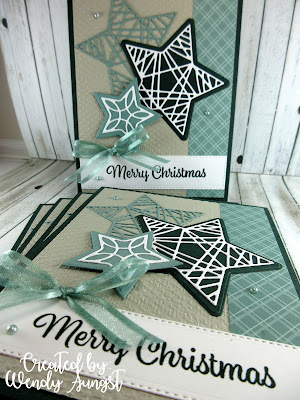 I cased a set of July 4th cards I made last month using the Christmas Trimmings Dies. I used Soft Succulent, Evening Evergreen and Sahara Sand for my cardstock colors. I love the 2 greens together! It was alot of work running those stars thru the Stampin Cut & Emboss Machine multiple times but I remembered to use the Adhesive Sheets to make it easier when adhering them on my card.