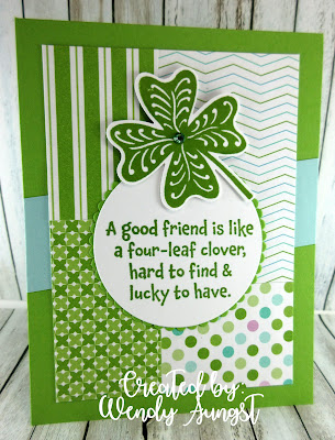 I am thankful I was able to get this stamp set & punch as I make & send St. Patrick's Day cards every year and the papers just make it even better!