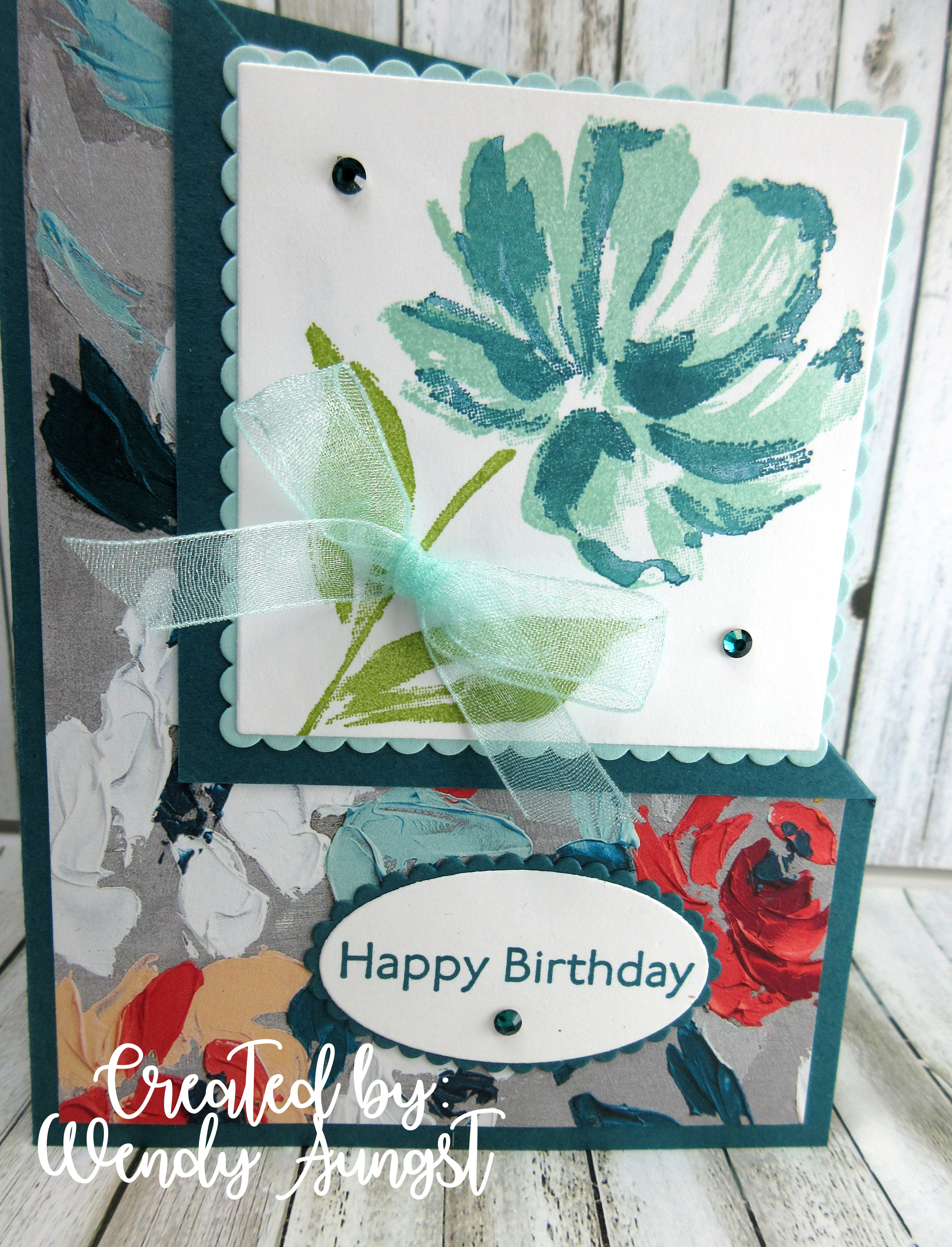 Cardstock: Pretty Peacock, Pool Party, Basic White, Fine Art Floral DSP (retired)